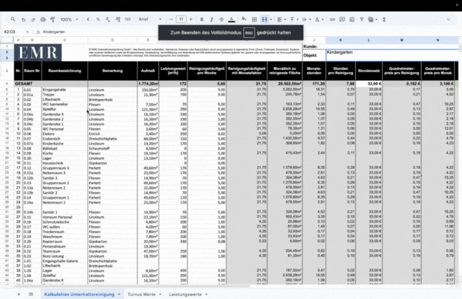 Lade dir kostenlos die Kalkulationstabelle herunter, mit der hunderte Gebäudedienstleister ihre